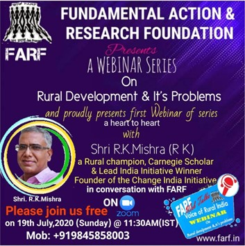 Two webinars were organized under the webinar series on Rural Development and its problems. The first was with Mr. RK Mishra a Rural champion, Carnegie Scholar, and Lead India Initiative Winner Founder of the Change India Initiative for free. He left his abroad job to work on nation development, he opened a milk cooperative group in his Sonari Village, UP. [Recording]